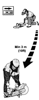 當心!鋸軌機的安全距離是15米。您有責任注意觀察在此范圍內(nèi)沒有工作人員亦沒有任何動物。在工作現(xiàn)場準備就緒和站穩(wěn)以前,永遠不要開始操作。